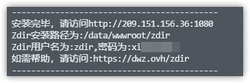 1080: 服务器所监听的端口,即 Zdir 访问端口/data/wwwroot/default:Zdir 路径- 默认用户名