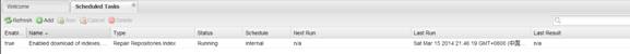 点击“Save”后,点击左边的“Scheduled Tasks”链接,会出现图 8 界面,说明 Nexus 后台在下载 Maven 中央仓库的索引。