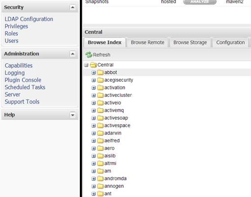 Nexus 是一个强大的 Maven 仓库管理器,它极大地简化了自己内部仓库的维护和外部仓库的访问。利用 Nexus 你可以只在一个地方就能够完全控制访问和部署在你所维护仓库中的每个 Artifact。Nexus 是一套“开箱即用”的系统不需要数据库,它使用文件系统加 Lucene 来组织数据。Nexus 使用 ExtJS 来开发界面,利用 Restlet 来提供完整的 REST APIs,通过 m2eclipse 与 Eclipse 集成使用。Nexus 支持 WebDAV 与 LDAP 安全身份认证。