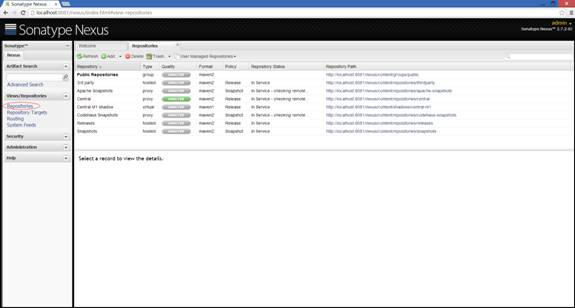 在图 5 中,Nexus 列出了默认的几个仓库:
