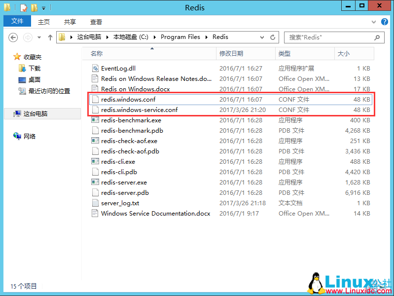找到安装目录,根目录有 redis.windows.conf 和 redis.windows-service.conf 两个配置文件