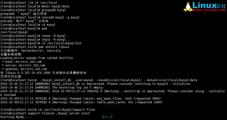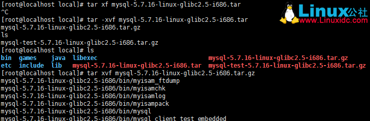[root@localhost local]# tar -xvf mysql-5.7.16-linux-glibc2.5-i686.tar