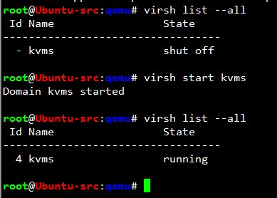 启动 Ubuntu-dst 上的 kvms 虚拟机,并登录 kvms 虚拟机: